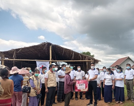 ဇော်ဂျီမြစ်ရေလျှံမှုကြောင့် ရေဘေးသင့်အိမ်ထောင်စုများအား ကြက်ခြေနီက ဘေးလွတ်ရာသို့ ကူညီရွှေ့ပြောင်းပေးပြီး ထောက်ပံ့ပစ္စည်းများ ပေးအပ်