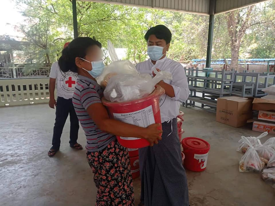 ကြက်ခြေနီက စစ်ကိုင်းတိုင်းဒေသကြီး မြို့နယ်(၄) မြို့နယ်ရှိ ယာယီခိုလှုံရေးစခန်းများနှင့် ကျေးရွာမှ ပြည်သူများအား လူသားချင်းစာနာထောက်ထားမှု အကူအညီများပေး