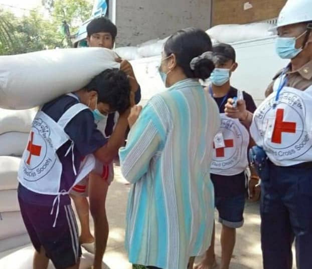 MRCS နှင့် WFP တို့ပူးပေါင်းပြီး ရွှေပြည်သာမြို့နယ်ရှိ ရပ်ကွက်များတွင် ဆန်ဖြန့်ဝေ