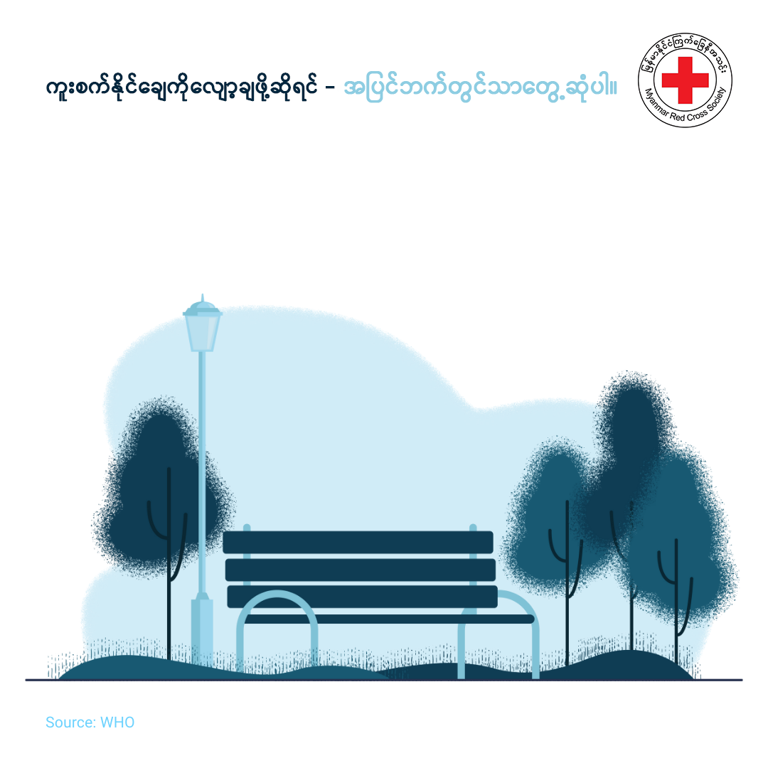 ရောဂါကူးစက်နိုင်ချေကိုလျော့ချဖို့ဆိုရင် – အပြင်ဘက်တွင်သာတွေ့ဆုံပါ။