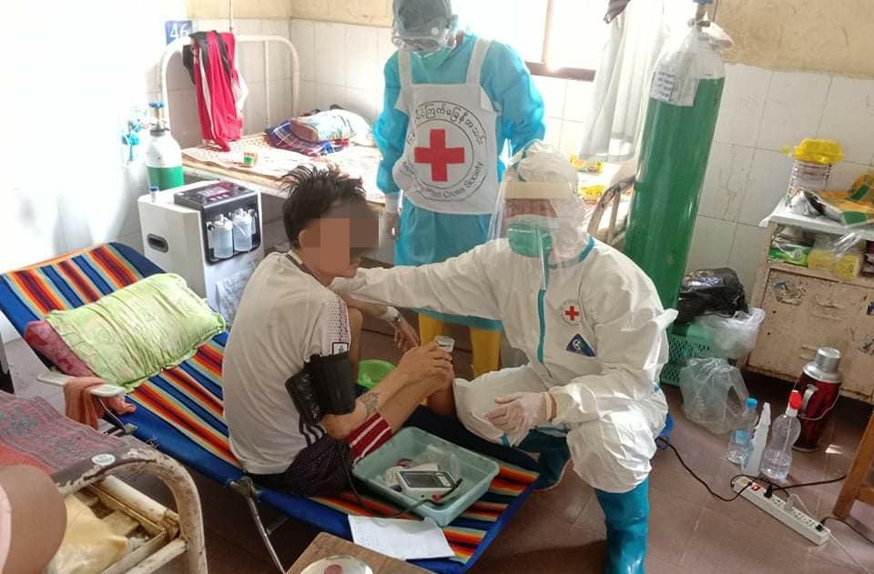 လူနာများကို မွန်ပြည်နယ်မှ ကြက်ခြေနီများကကူညီပို့ဆောင်