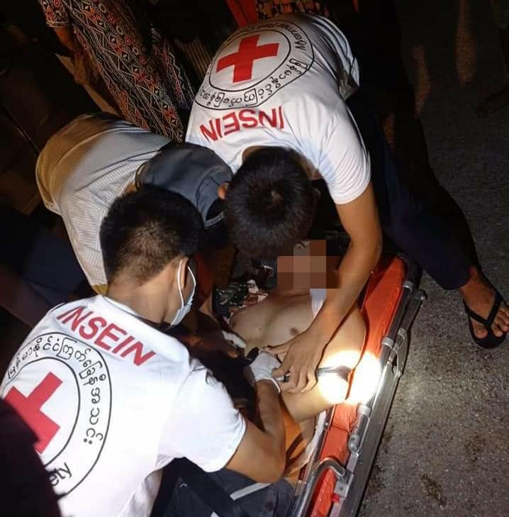 ယာဉ်မတော်တဆမှုကြောင့် ထိခိုက်ဒဏ်ရာရသူများကို အင်းစိန်မှ ကြက်ခြေနီစေတနာလုပ်အားရှင်များက ရှေးဦးပြုစု