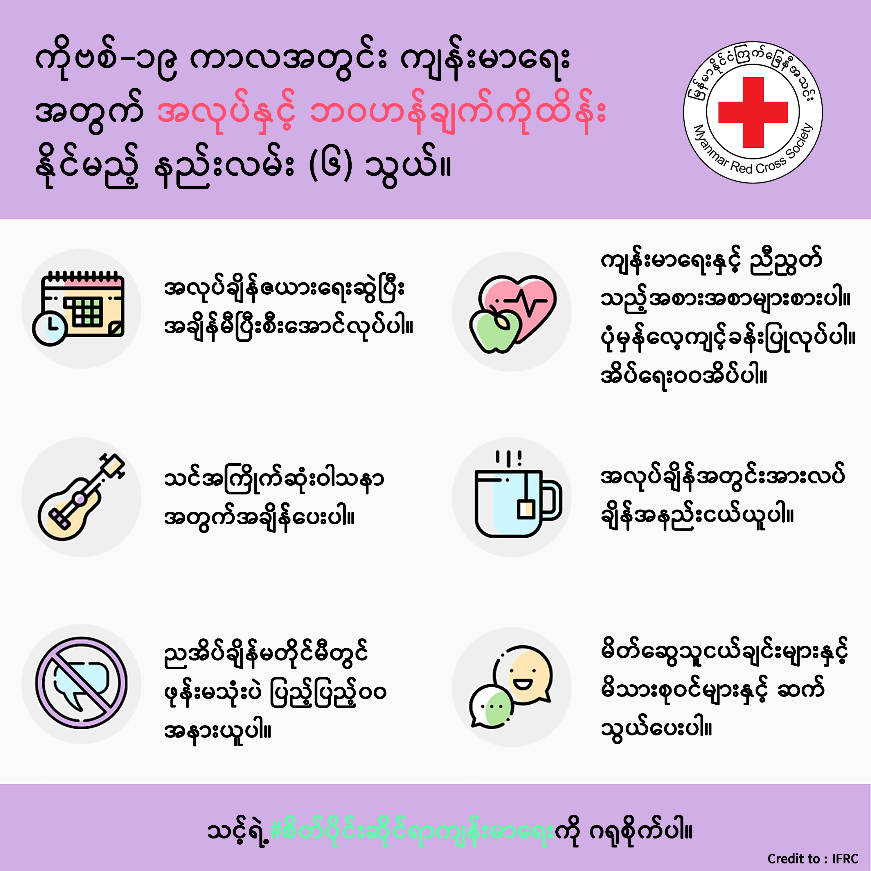 ကိုဗစ်-၁၉ ကာလအတွင်း ကျန်မာရေးအတွက် အလုပ်နှင့် ဘဝဟန်ချက်ကိုထိန်းနိုင်မည့် နည်းလမ်း (၆) သွယ်။
