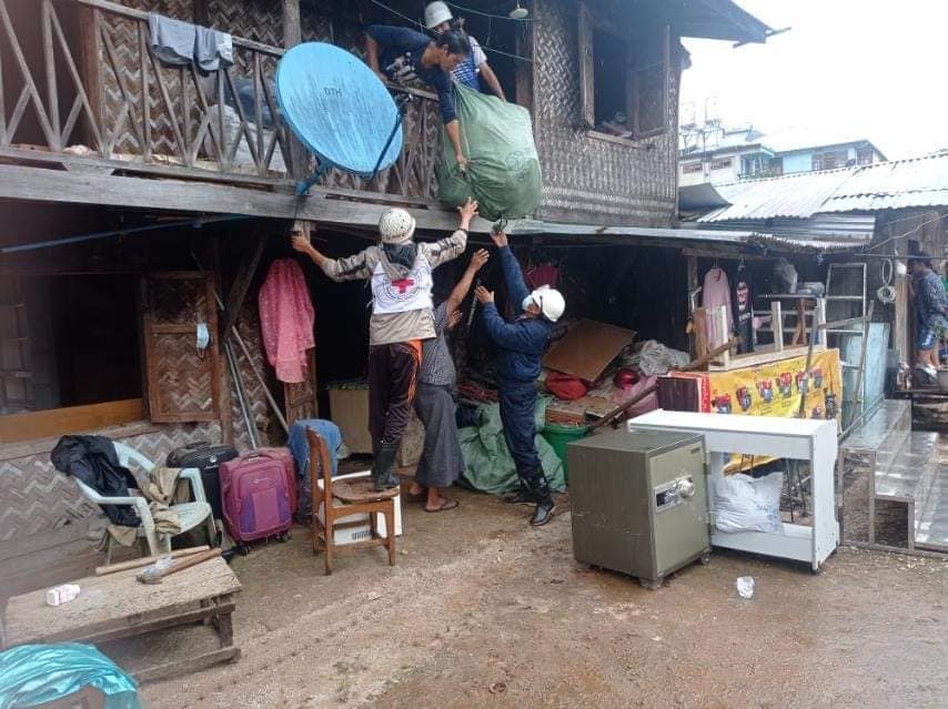 မိုးကုတ်တွင် မိုးသည်းထန်စွာရွာသွန်းပြီး ချောင်းကမ်းပါးတိုက်စားမှုကြောင့် နေအိမ်ရွေ့ပြောင်းသူများကို ကြက်ခြေနီကူညီ