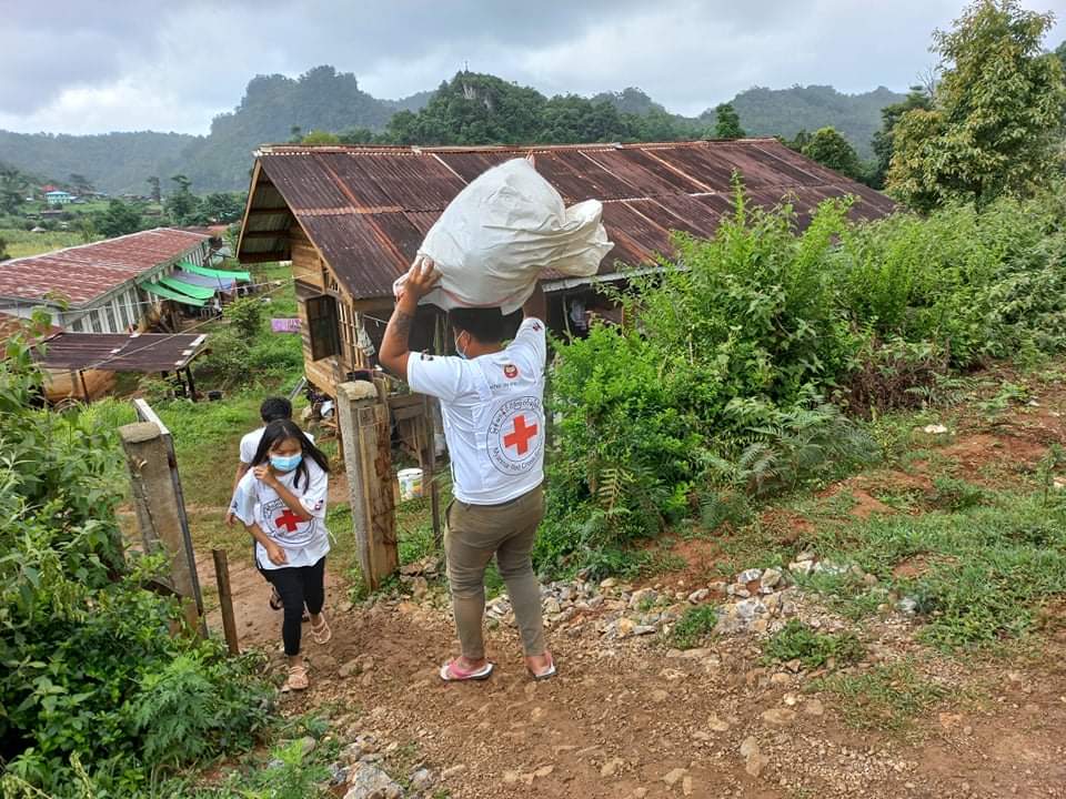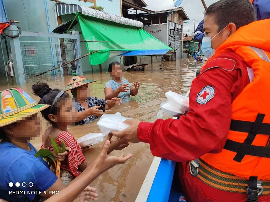 ရေကြီးရေလျှံမှုများကြောင့် ရေဘေးသင့်အိမ်ထောင်စုများ ယာယီကယ်ဆယ်ရေးစခန်းများသို့ ပြောင်းရွှေ့ရာတွင် ကြက်ခြေနီက ပူးပေါင်းကူညီ
