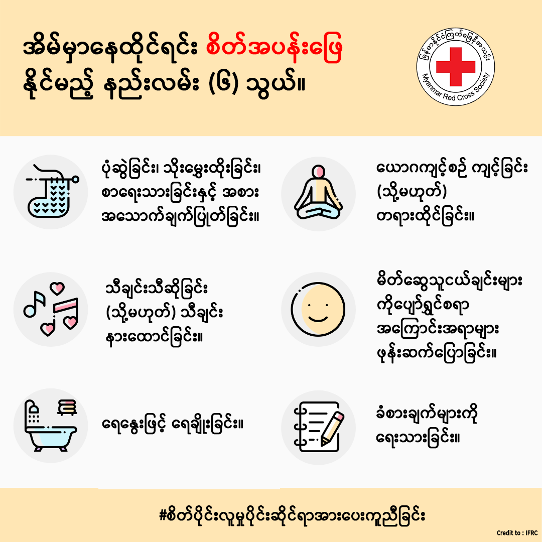 ကိုဗစ်-၁၉ ကပ်ရောဂါကာလအတွင်း အိမ်မှာနေထိုင်ရင်း စိတ်အပန်းဖြေနိုင်မည့် နည်းလမ်း (၆) သွယ်