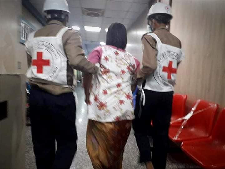 သတိလစ်နေေသာလူနာကို ကြက်ခြေနီက ရှေးဦးပြုစုပြီး ဆေးရုံသို့ ကူညီပို့ဆောင်