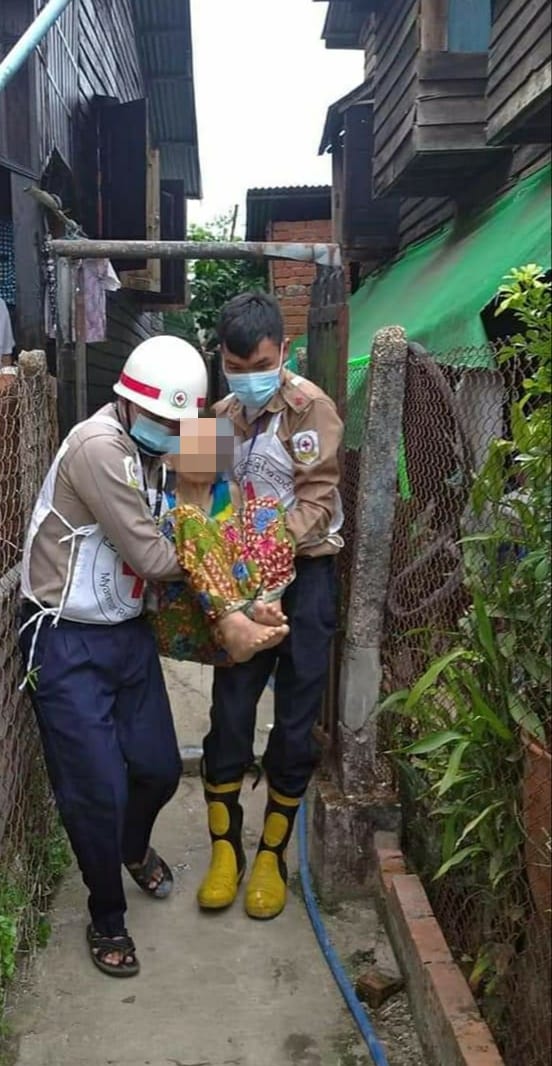 နှလုံးရောဂါခံစားရသူ အဖွားအိုကို ကြက်ခြေနီက ဆေးရုံသို့ကူညီပို့ဆောင်
