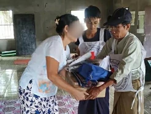 ရေးမြို့နယ် မာန်အောင်ကျေးရွာ ယာယီနေရပ်စွန့်ခွာပြည်သူများအတွက် ကြက်ခြေနီက ပစ္စည်းများထောက်ပံ့