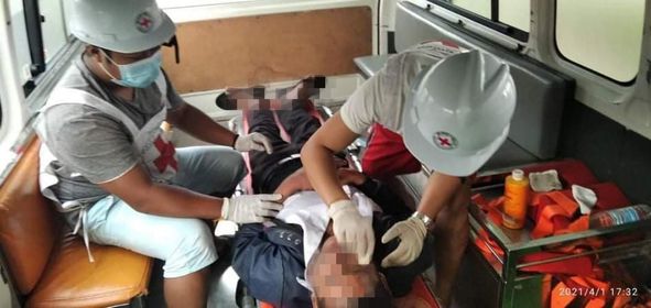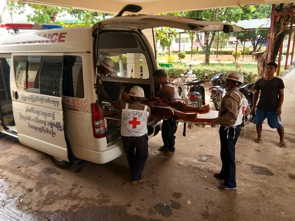 ဆိုင်ကယ်မတော်တဆဖြစ်ပွားမှုကြောင့် ထိခိုက်ဒဏ်ရာရရှိသူအား ကြက်ခြေနီက အရေးပေါ်ရှေးဦးပြုစုပေး