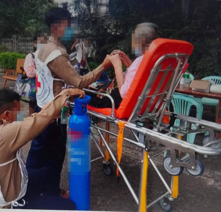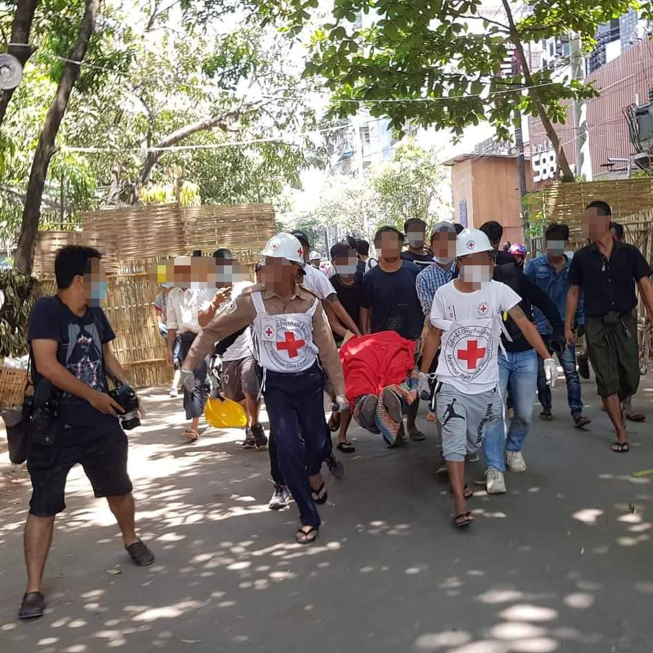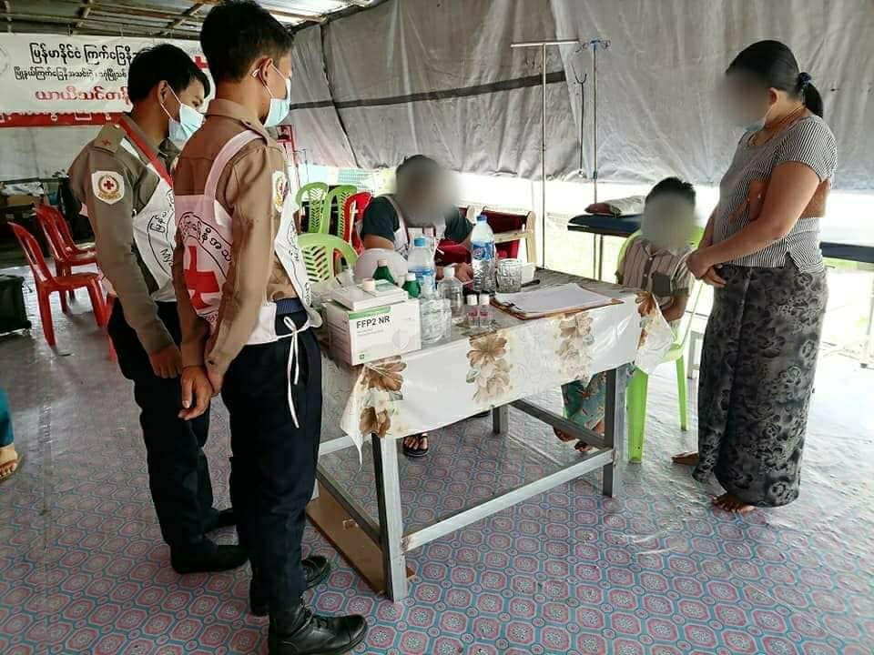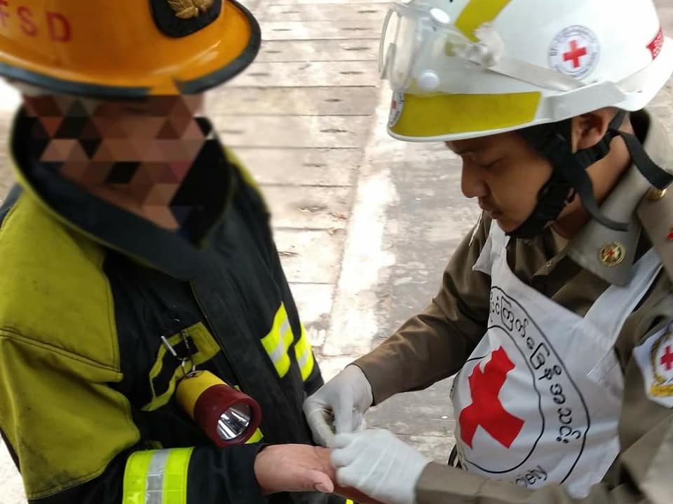 မီးလောင်မှုဖြစ်ပွားရာ၌ ထိခိုက်ဒဏ်ရာရသူများအား ကြက်ခြေနီကရှေးဦးပြုစုပေး