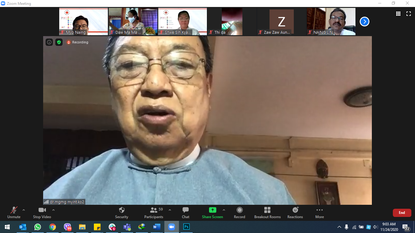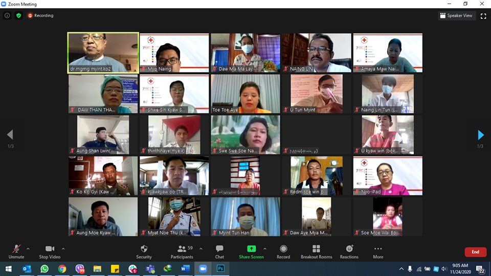ရှေးဦးပြုစုခြင်းဥာဏ်စမ်းပြိုင်ပွဲနှင့် ကြက်ခြေနီဘာသာရပ်ဆိုင်ရာ စာစီစာကုံးပြိုင်ပွဲများတွင် ဆုရရှိသူများအား ဆုချီးမြှင့်သည့် အွန်လိုင်း အခမ်းအနားပြုလုပ်