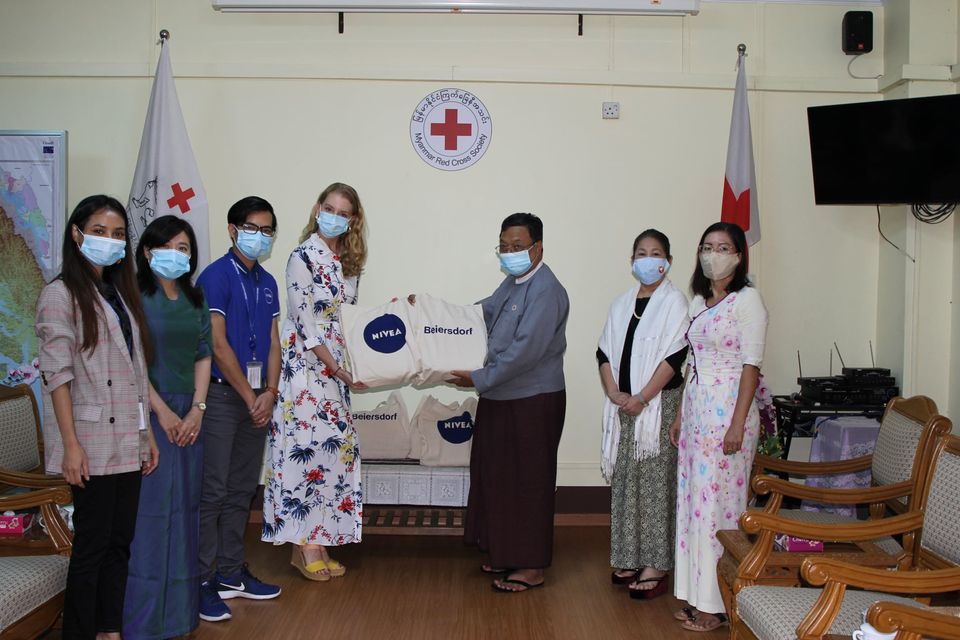မြန်မာနိုင်ငံကြက်ခြေနီအသင်း ဥက္ကဌ ဒေါက်တာမောင်မောင်မြင့် COVID-19 ရောဂါကာကွယ်ရေးလုပ်ငန်းများအတွက် Beiersdorf Myanmar မှ အလှူငွေနှင့် ပစ္စည်းများလှူဒါန်းပွဲသို့တက်ရောက်