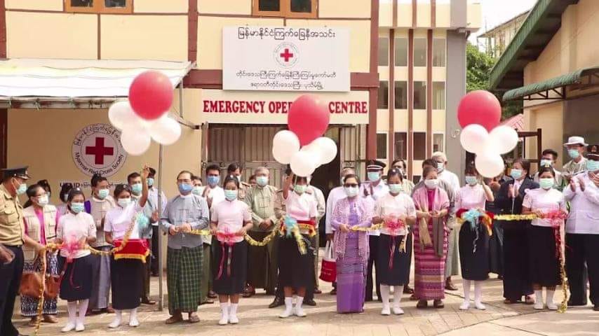 ဧရာဝတီတိုင်းဒေသကြီး ကြက်ခြေနီကြီးကြပ်မှုကော်မတီ အရေးပေါ်ကွပ်ကဲမှုစင်တာ ဖွင့်ပွဲနှင့် COVID-19 ရောဂါကာကွယ်ရေးလုပ်ငန်းများတွင် စွမ်းစွမ်းတမံပါဝင်ဆောင်ရွက်ခဲ့ကြသည့် ကြက်ခြေနီေစတနာလုပ်အားရှင်များအား ဂုဏ်ပြုပွဲ ကျင်းပ