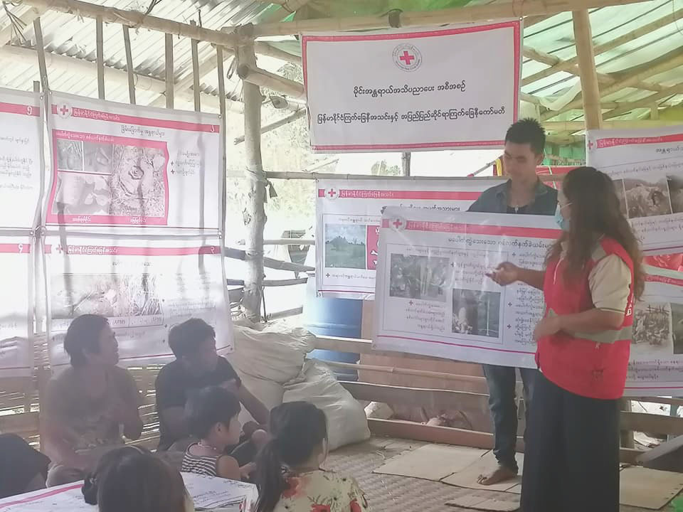 ကျေးရွာအရောက် မိုင်းအန္တရာယ်အသိပညာပေးခြင်းများ ကြက်ခြေနီပြုလုပ်