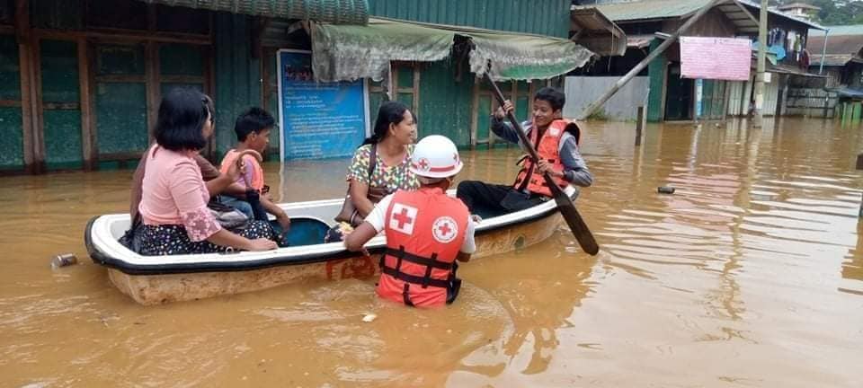 ဖားကန့်တွင် ကြက်ခြေနီမှ ရေဘေးသင့်ပြည်သူများအား ဘေးလွတ်ရာသို့ ကူညီရွှေ့ပြောင်း