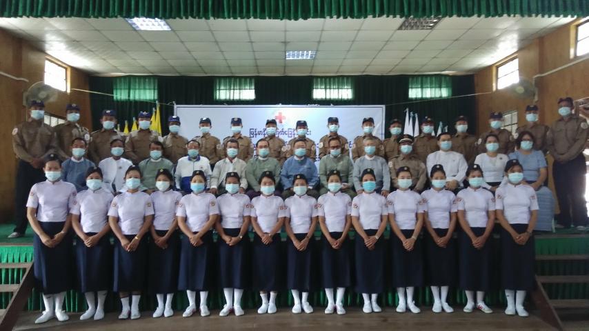 မြန်မာနိုင်ငံကြက်ခြေနီအသင်း ဥက္ကဌ ဒေါက်တာမောင်မောင်မြင့် ညောင်တုန်း၌ ပြုလုပ်သော ရှေးဦးပြုစုခြင်း(အခြေခံအဆင့်) သင်တန်းဆင်းပွဲတွင် ထူးချွန်ရရှိသူများအား ဆုချီးမြှင့်