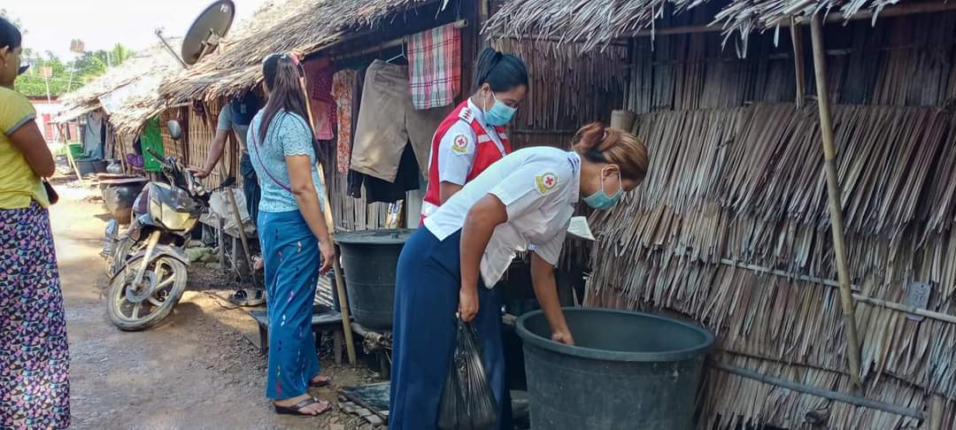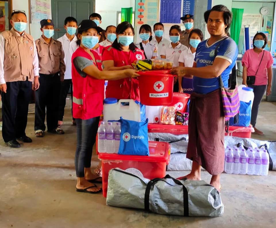 နေပြည်တော် လယ်ဝေးတွင် ရေဘေးသင့်ပြည်သူများအား ကြက်ခြေနီမှ ထောက်ပံ့ပစ္စည်းများပေးအပ်