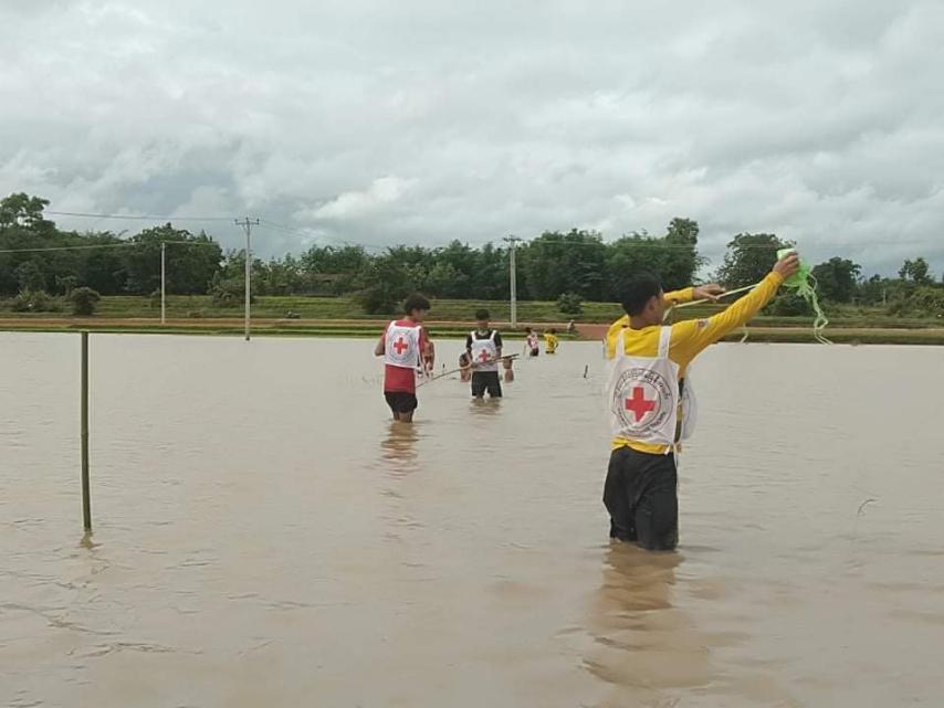 ရေကျော်သည့်လမ်းတွင် အန္တရာယ်ကင်းအမှတ်အသားများစိုက်ထူခြင်း ကြက်ခြေနီဆောင်ရွက်