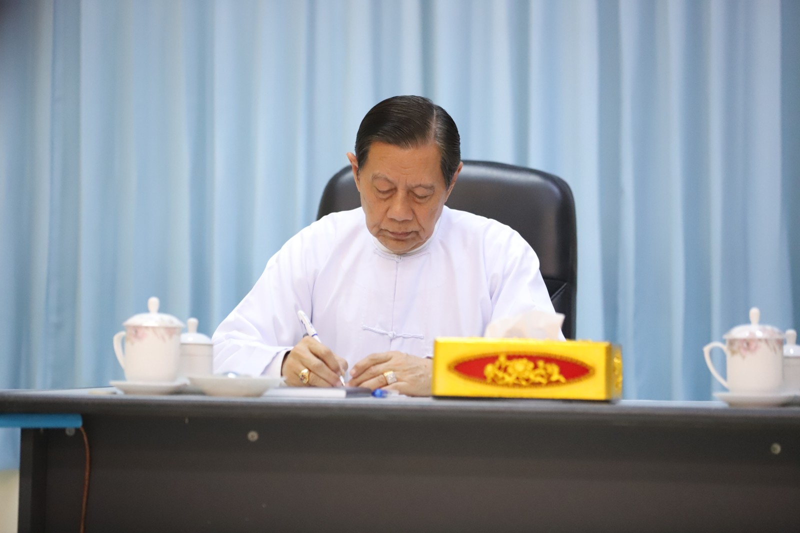 မြန်မာနိုင်ငံကြက်ခြေနီအသင်း ဥက္ကဌ ဒေါက်တာမျိုးညွန့် လယ်ဝေးမြို့နယ် လေဘေးသင့် ပြည်သူများအား အခြေခံစားသောက်ကုန်များ ထောက်ပံ့ပေးအပ်ပွဲသို့ တက်ရောက်